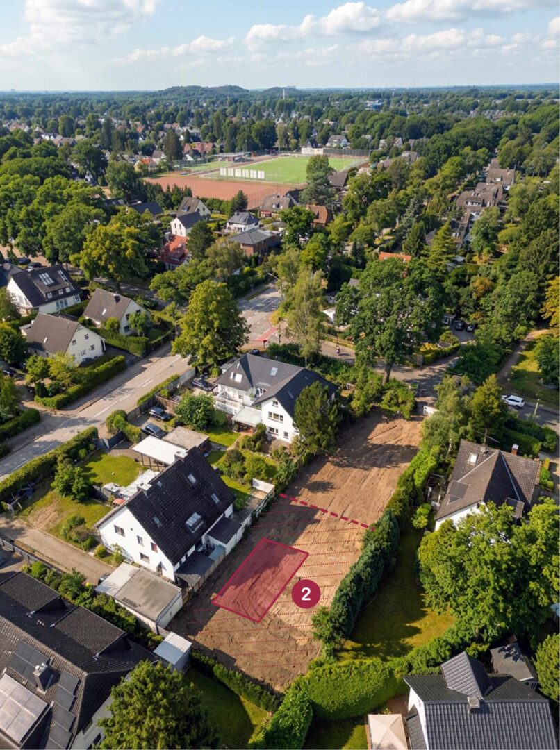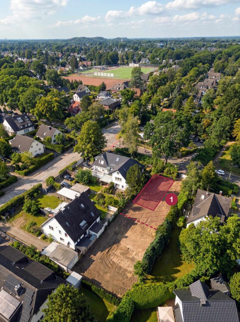 Das angebotene Grundstück befindet sich im beliebten Hamburger Stadtteil Poppenbüttel und verfügt über eine Gesamtfläche von ca. 911 m². Im Zuge einer möglichen Neuaufteilung entstehen zwei Grundstücke mit jeweils rund 455 m² Fläche.