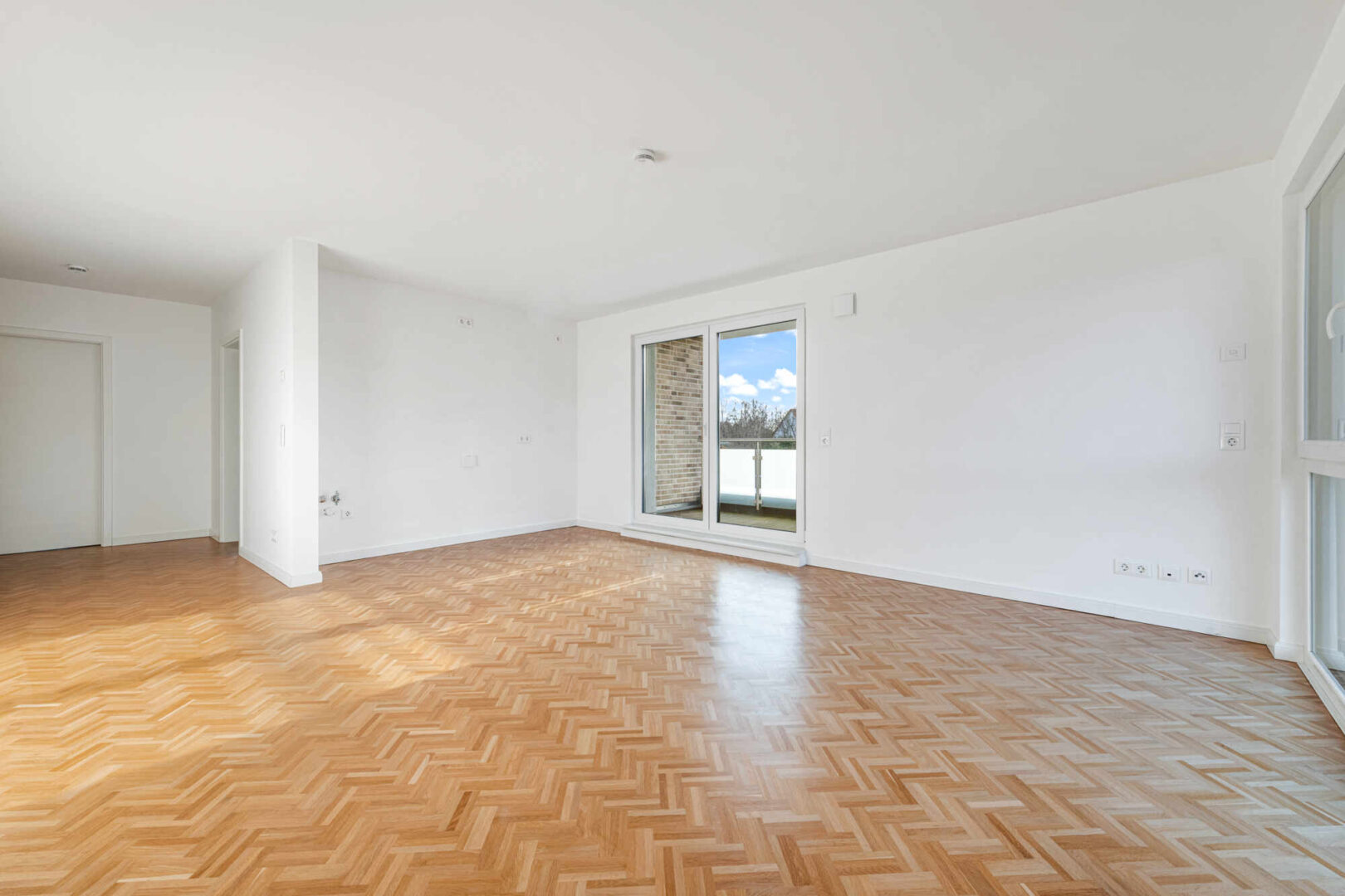 Großzügige, bodentiefe Fenster durchfluten die Räume mit Licht und schaffen eine offene, freundliche Atmosphäre. Der offene Küchenbereich (ohne Einbauküche) geht fließend in den Wohnraum über und führt auf den Balkon – perfekt für entspannte Stunden im Freien. Ein separates Schlafzimmer bietet ruhigen Rückzug, ein begehbarer Kleiderschrank sorgt für zusätzlichen Komfort und Abstellmöglichkeiten.