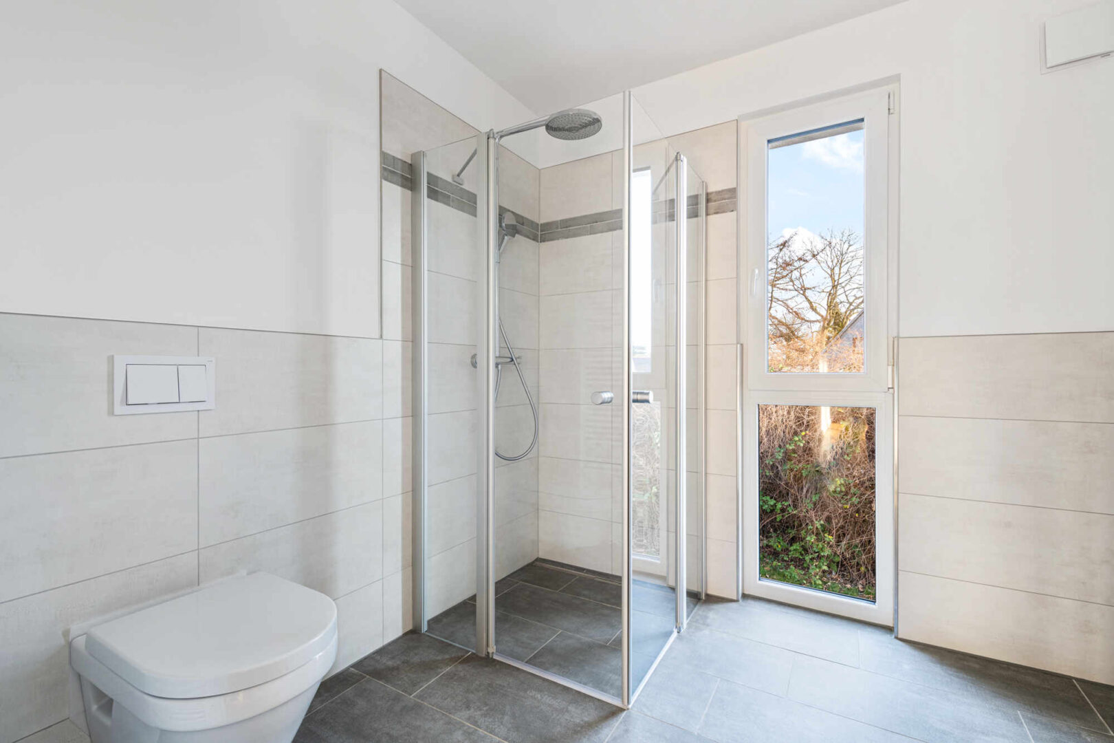 Edles Eichenparkett im Stäbchenformat in Vollholzausführung, Fußbodenheizung mit Einzelraumsteuerung sowie eine moderne Lüftungstechnik mit Wärmerückgewinnung unterstreichen den hohen Wohnstandard. Das stilvolle Bad mit bodengleicher Dusche, Waschmaschinenanschluss, großformatigen Fliesen und hochwertiger Villeroy-&-Boch-Sanitärausstattung rundet das Angebot ab.
