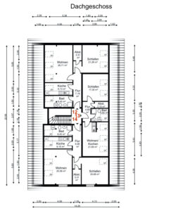 Das Gebäude im Hinterhof wurde ca. 1900 erbaut und unterteilte sich seinerzeit in ein Wohnhaus und einen angrenzenden Gebäudeteil zu Nutzzwecken (Scheune, Stall). Im Jahr 1996 hat der erste Ausbau stattgefunden. Im Obergeschoss wurden vier Wohnungen, im Dachgeschoss drei Wohnungen ausgebaut. Drei weitere Wohnungen wurden 2008 im Erdgeschoss ausgebaut, der Ausbau einer vierten Wohnung auf dieser Ebene fand Anfang 2024 statt. Heute ergibt sich eine Wohnfläche von ca. 1.034 m², welche sich auf insgesamt 14 Wohneinheiten verteilt.