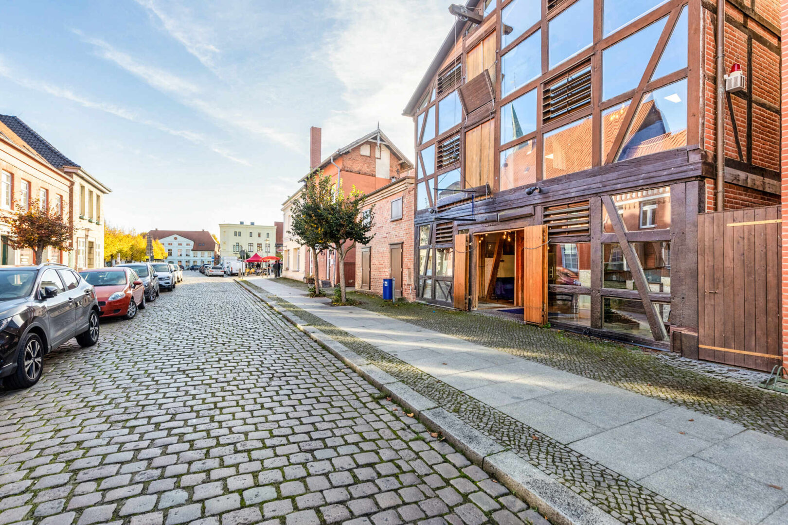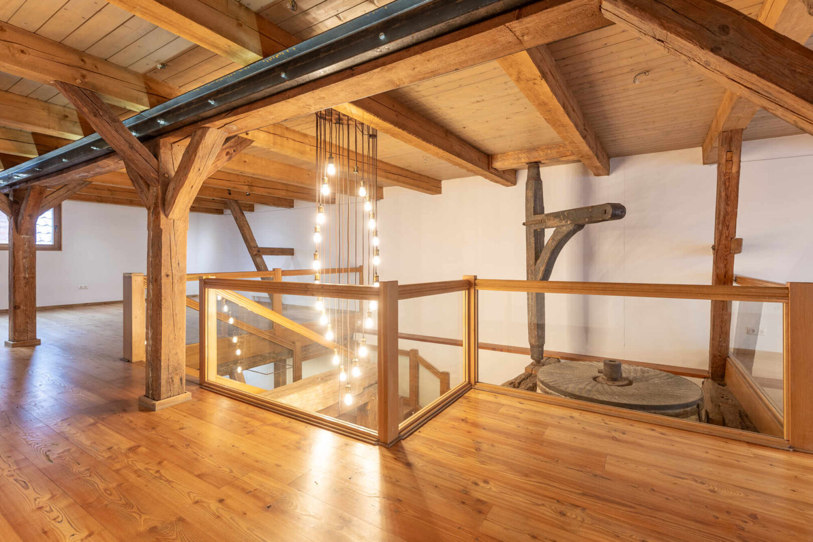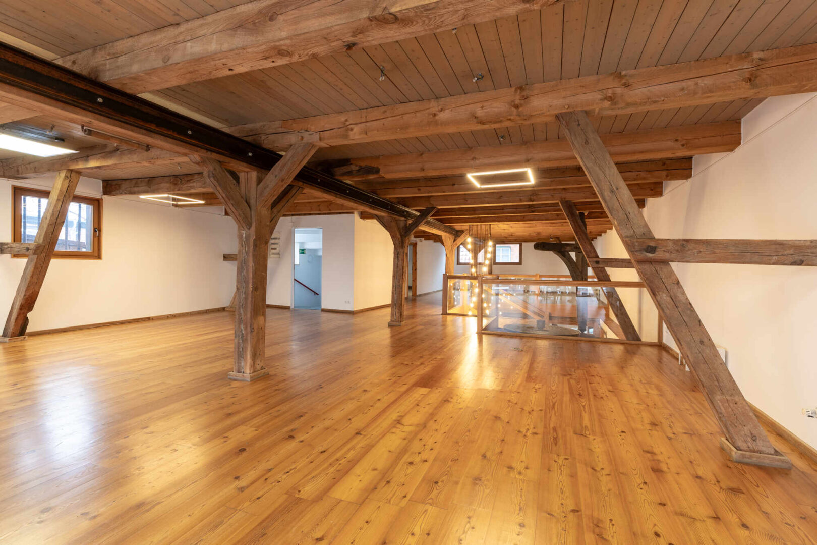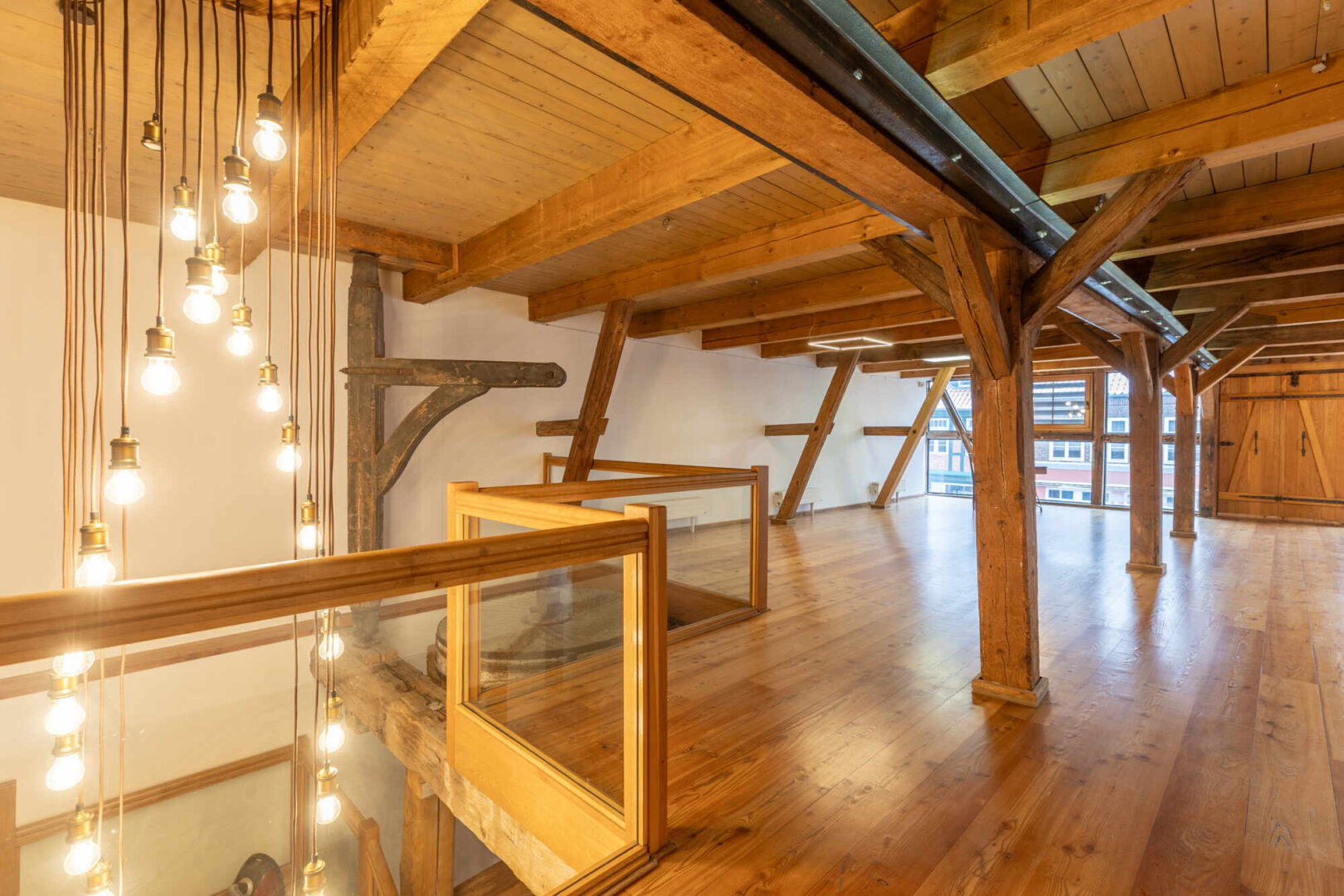 Diese faszinierende Gewerbeimmobilie zieht Sie auf den ersten Blick in ihren Bann. Hier wurde ein ehemaliger Kornspeicher aus der Gründerzeit zu einem, innen wie außen, repräsentativen Geschäftshaus um- und ausgebaut. Das gesamte Gebäude wurde 1996/97 aufwändig unter Beibehaltung alter Stilelemente saniert und modernisiert. Das Fachwerk der vorderen Fassade wurde ganzflächig verglast. Historische Einbauten wie Mahlwerk, Kranwinde, Fachwerk und Deckenbalken wurden erhalten.