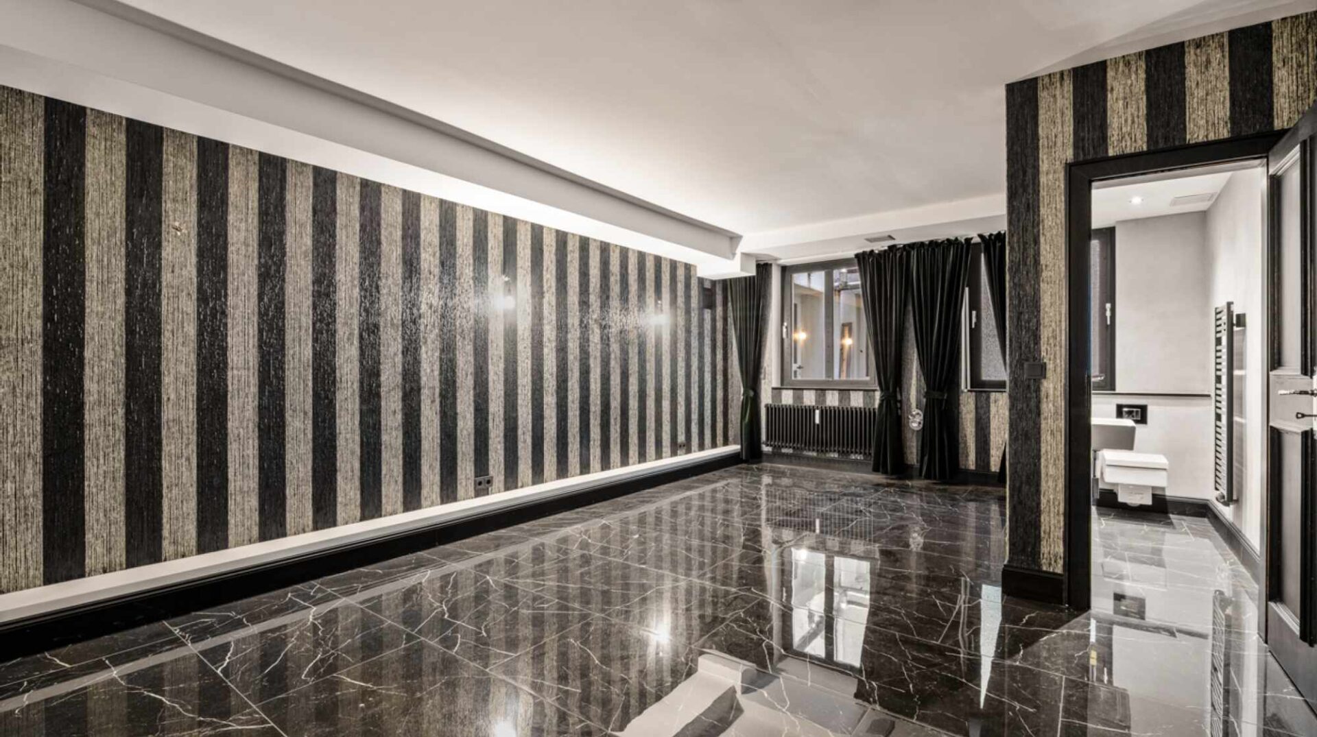 Die Böden im unteren Bereich sind mit großen Feinsteinplatten versehen, während hochwertige Sanitärbereiche mit WC zeitgemäß gestaltet wurden. Zudem wurde eine aufwendige Elektrik sowie eine unter Putz verlegte CAT-7 Verkabelung installiert.