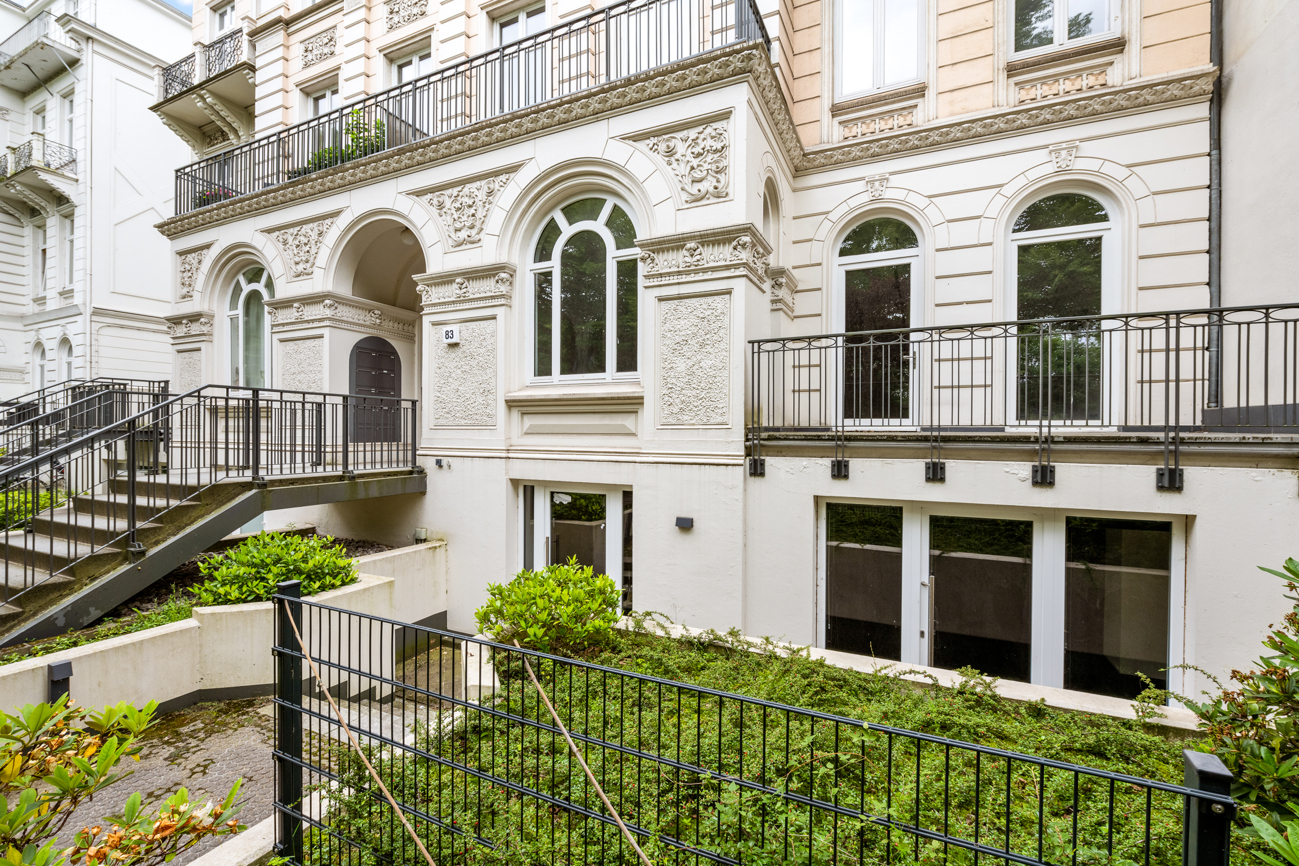 Die zur Verfügung stehenden Verkaufsflächen befinden sich auf der repräsentativen Fassadenseite des Gründerzeit-Hauses, ausgerichtet über zwei Ebenen zur Rothenbaumchaussee hin, und verfügen über direkte Zugänge.